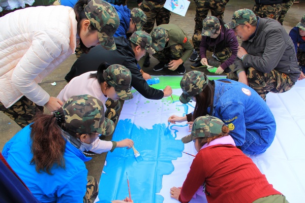 在晚会汇报环节,各队自导自演了 “巾帼英雄刘胡兰”“董存瑞炸碉堡” “狼牙山五壮士”等情景话剧,通过现场朗诵红色诗词、唱红歌等互动形式,让大家重温了革命先烈英勇事迹,受到了深刻的革命传统教育。“共绘蓝图”环节将拓展训练气氛推向高潮,各队成员现场手绘拼图和公司LOGO,最后拼凑出一张“砥砺奋进、永不止步”巨幅画面,在航拍镜头里呈现了一幅令人震撼的蓝图。全体参训人员围绕壮美蓝图,环抱成圆,齐声祝福湖北农资的明天更加美好。