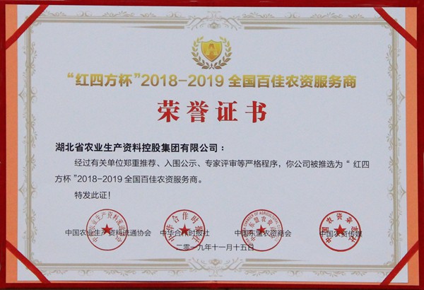 农资控股集团获评“2018-2019全国百佳农资服务商”称号