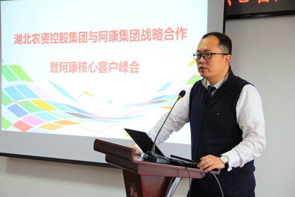 李勇董事长对任刚主席一行来汉出席此次峰会表示热烈的欢迎,并简要介绍了农资控股集团历史沿革、当前三大主业板块改革转型及战略规划有关情况,回顾了公司与阿康集团前期业务对接及友好合作历程,感谢阿康中国给予湖北农资的信任和支持。下一步,农资控股集团将充分发挥自身品牌、资源和网络优势,在市场推广和基层农化服务上深耕细作,为基层经销商提供更贴心的服务和保障。