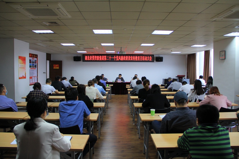 9月29日,农资控股集团召开第二十一个党风廉政建设宣传教育月活动大会。集团公司党委书记、董事长彭光明出席会议,党委委员、总经理王和贵讲授廉政党课,党委副书记、副总经理赵钢主持会议,集团公司高管、中层以上干部、驻汉全体在职党员参加会议。