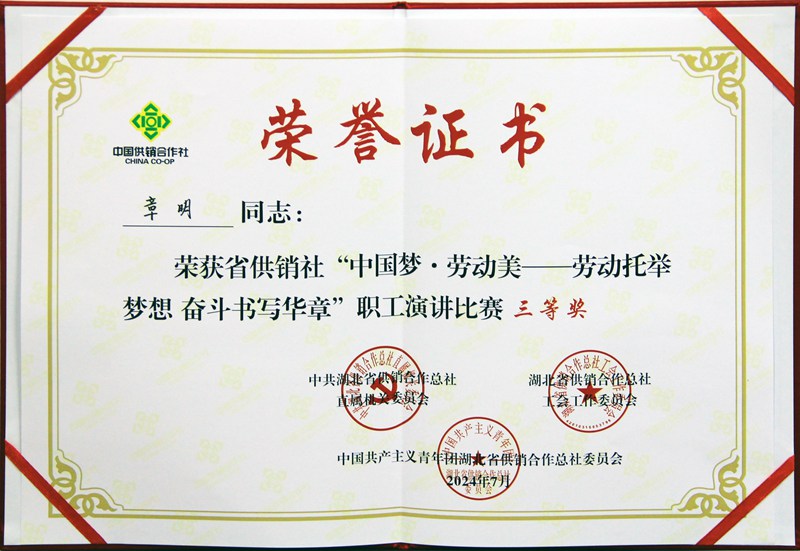 章明以《我与湖北农资共成长》为题,讲述了自身开展省外销售,服务上下游客户的成长经历,展示了迎难而上、越战越勇的奋斗精神。他说:“把工作当事业,热爱方能致远;把重任当锤炼,拼搏才能蜕变。”